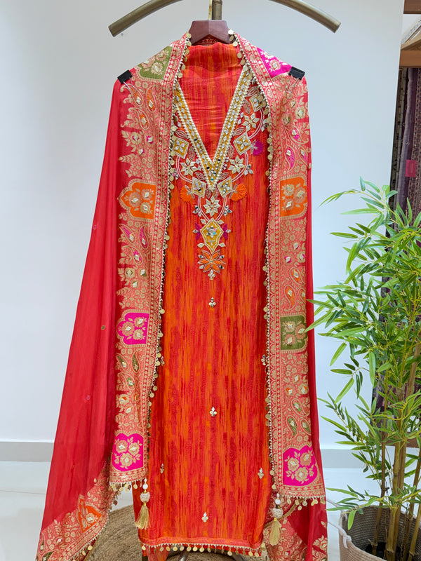 Magical Dual-Shade Tissue Silk Suit(Peach & Pink)