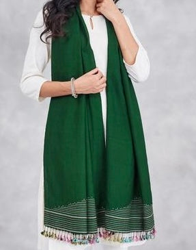 Weaved Woollen Suit With Jaal Dupatta (Mehndi Green)