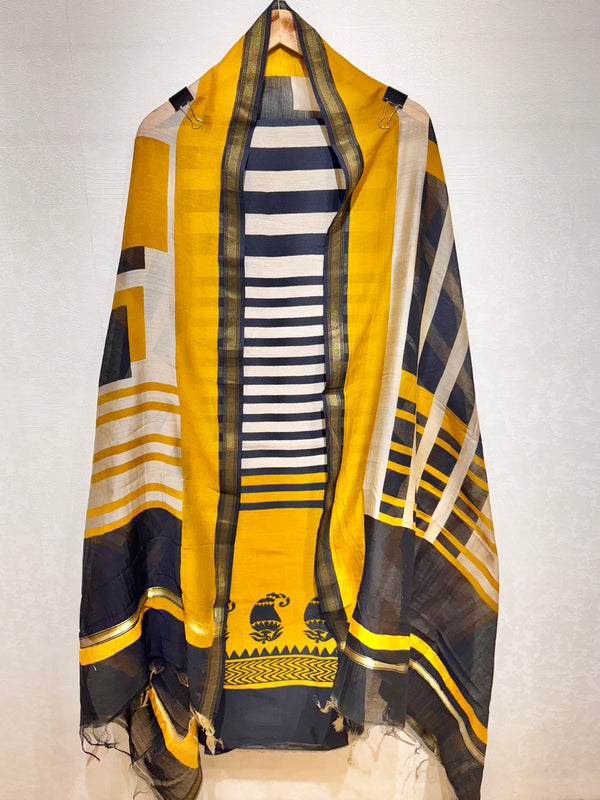 Chanderi Silk Suit With Silver Lined Grace(Yellow)