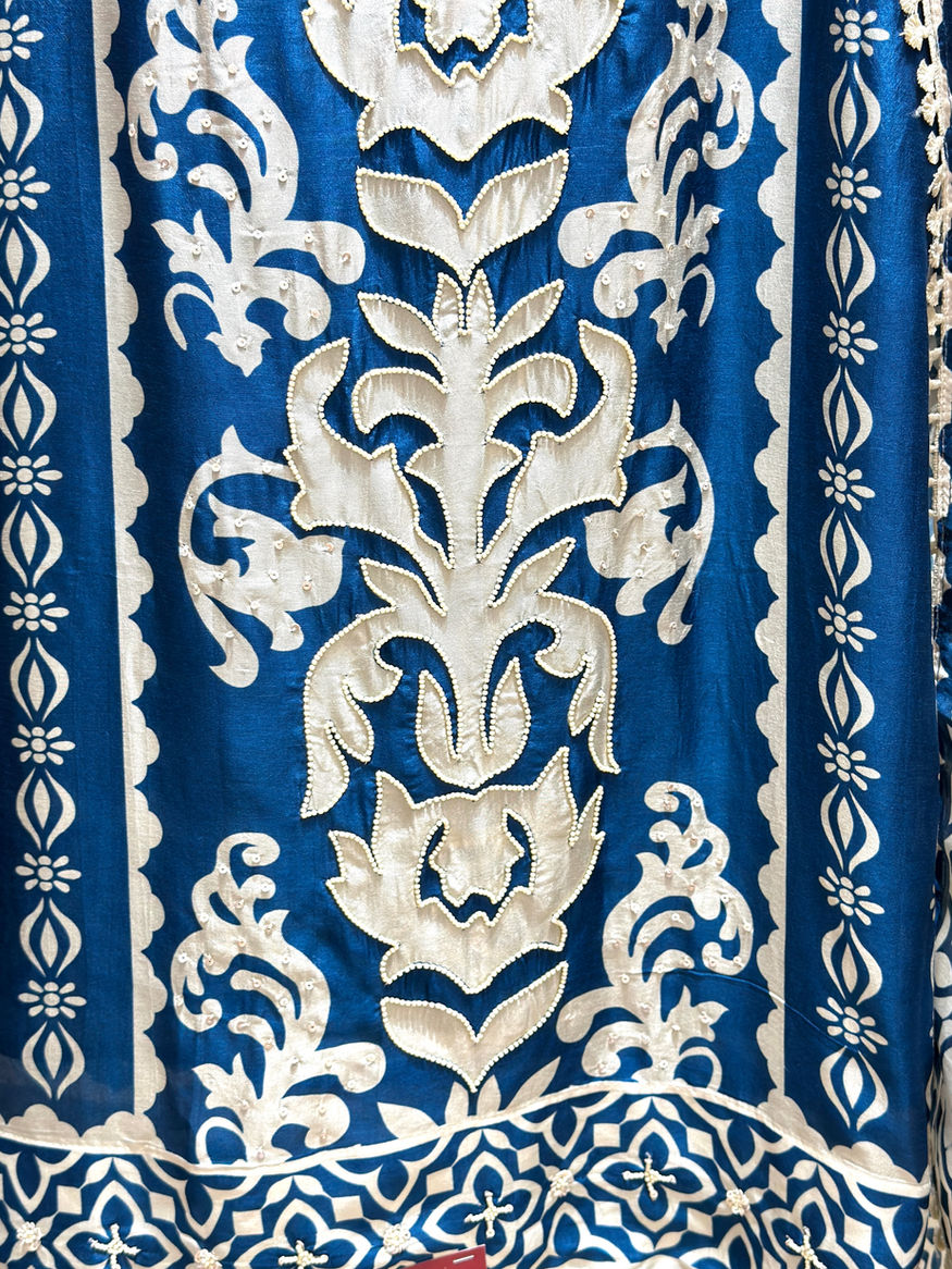 Pure Muslin Suit with central pearl embroidered motif ( Royal Blue)